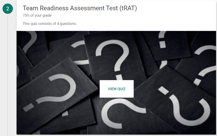 TBL exercises combined individual and team quizzes (iRAT and tRAT), encouraging students to debate answers and close knowledge gaps together.